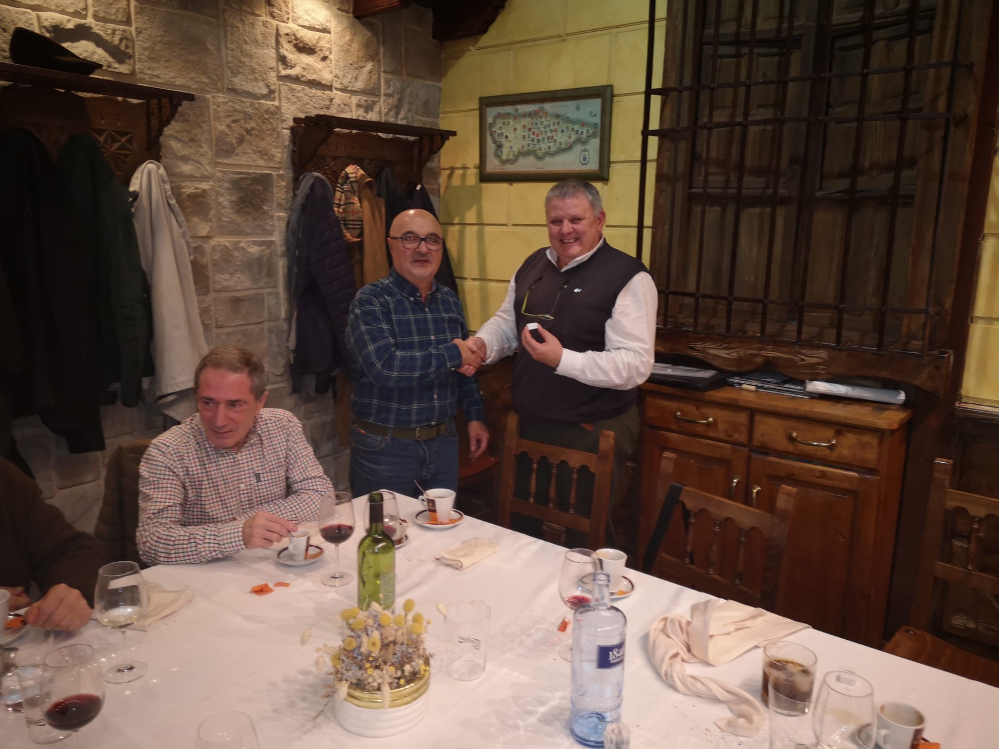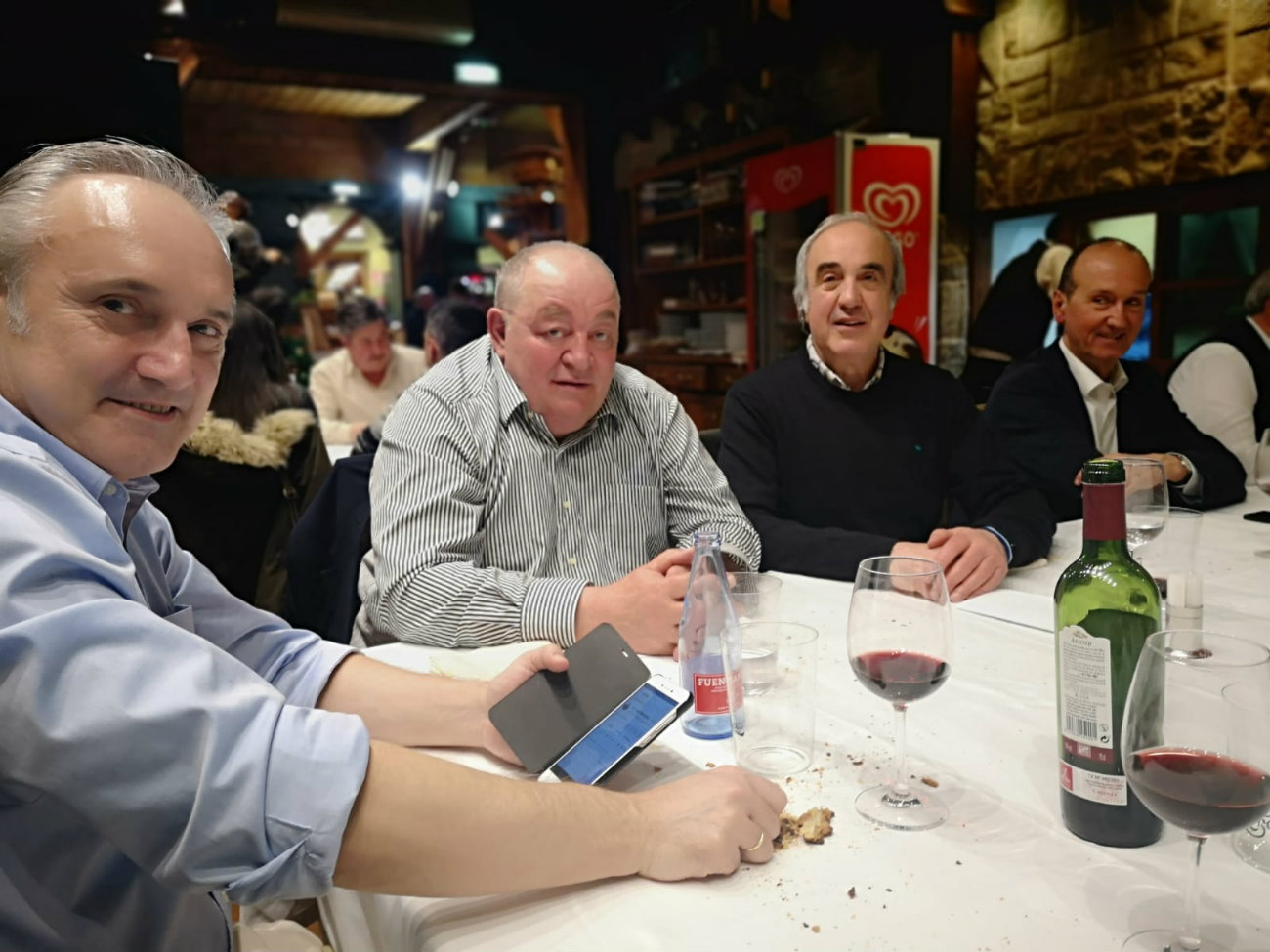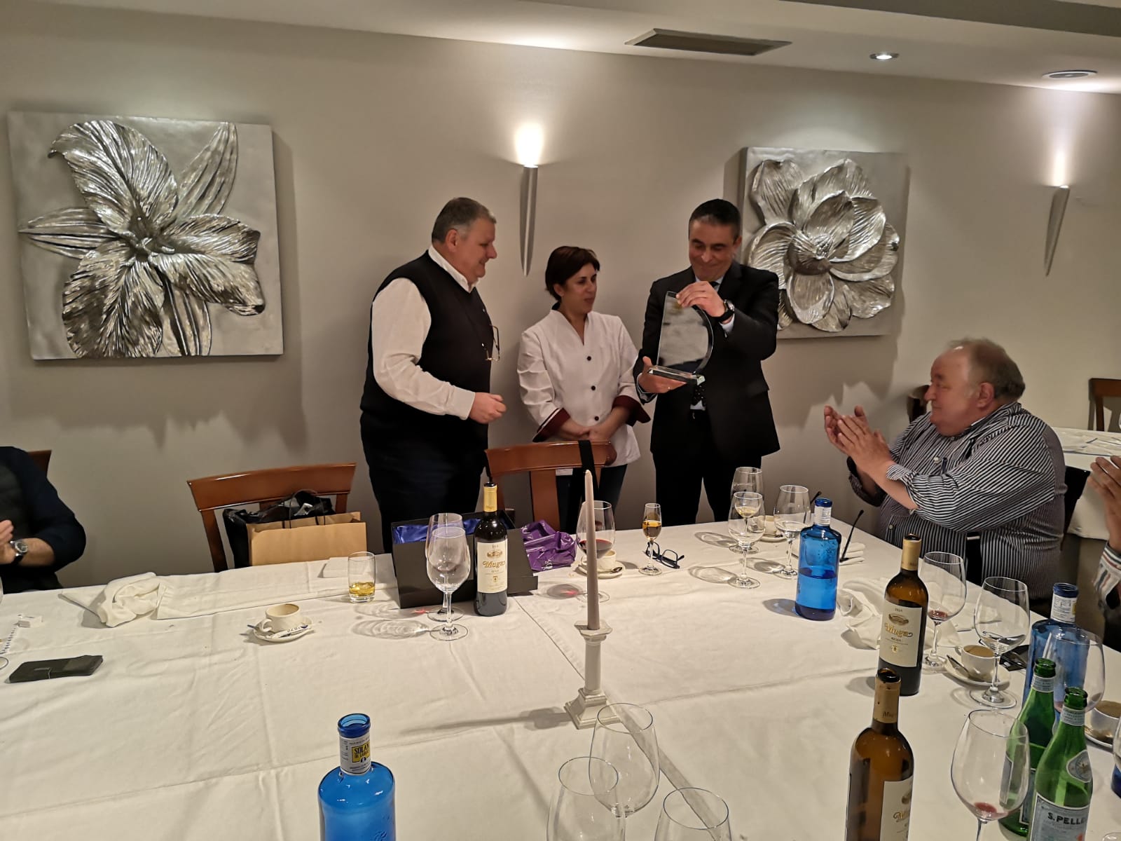 José, Ana y su equipo son mierenses, se les nota, tienen el salero y don de la gente Mieres y para más valor, son auténticos profesionales. Es muy agradable ver como la gente disfruta con su trabajo y aquí, en este local hostelero, es uno de ellos. Con lo que respecta a Tertulia 17 de Mieres siempre comer o cenar en el Azul, es una experiencia agradable y distinta, siempre hay un aliciente añadido en el local. Sin hablar del menú (ya lo hare más adelante), el cenador tiene ese toque de lugar encantado y acogedor, no le falta detalle y como de costumbre, esta vez tampoco podía fallar, nos coloco una mesa cuadrada (muy amplia y cómoda), donde el espíritu de nuestra tertulia (que no es otro que hablar y debatir), se desarrollo con plena fluidez por parte de todos los miembros. No quiero dejar pasar y se hace necesario, hacer una mención especial a “Noel” por su profesionalidad y desvelo en atender a tan numerosa mesa.