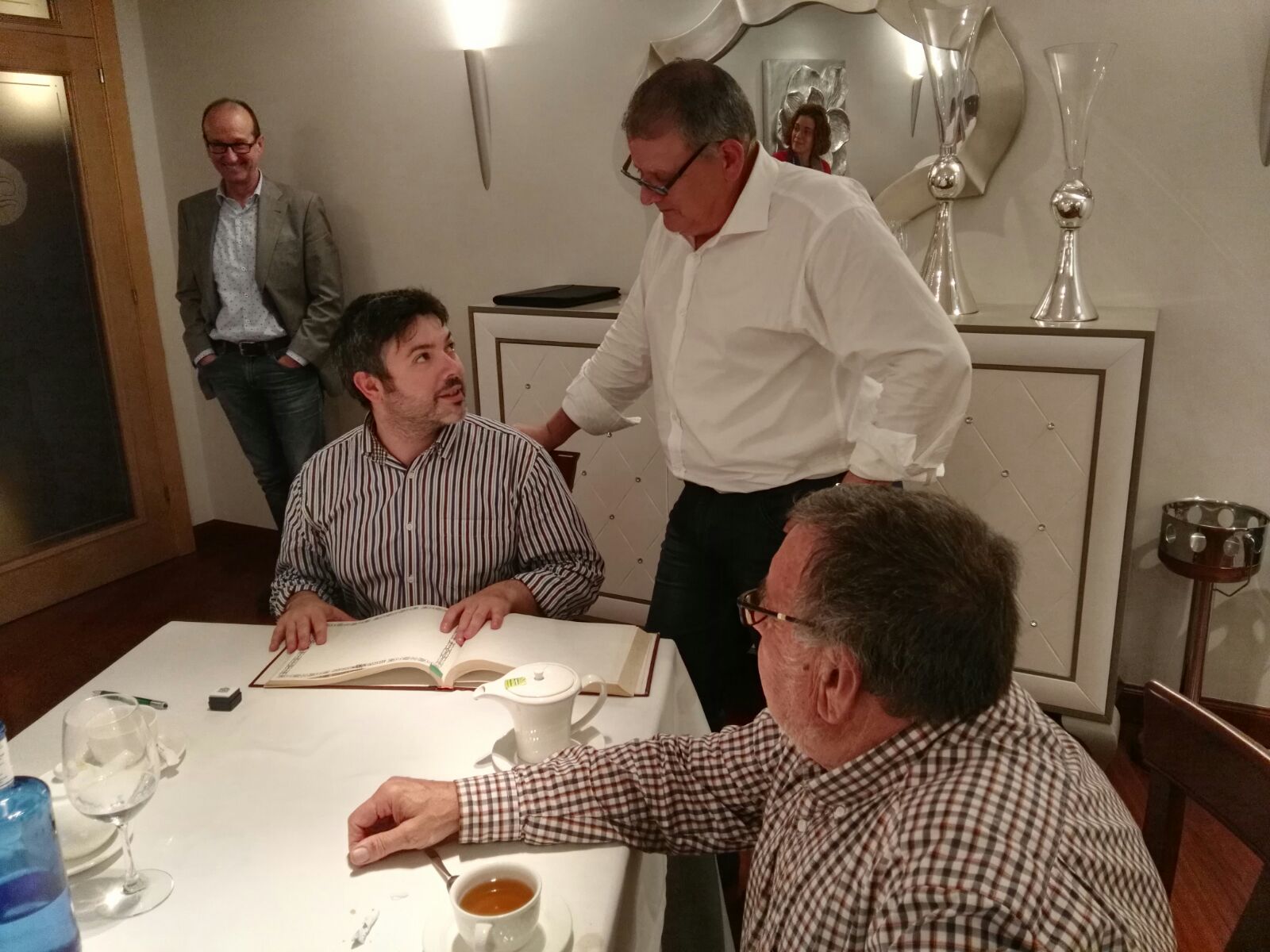 Anibal, Joaquin Uria y Juanjo con Ignacio Y Flora, los propietarios del restaurante