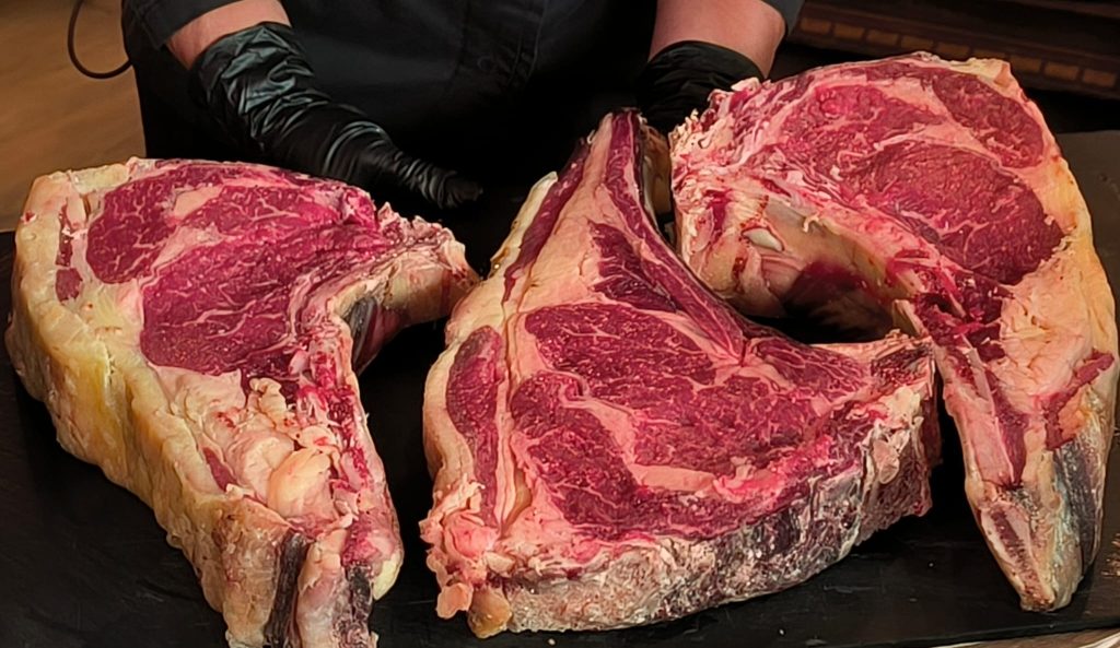 Presentación de los chuletones de vaca vieja para Tertulia 17 de Mieres. Tertulia 17 de Mieres
