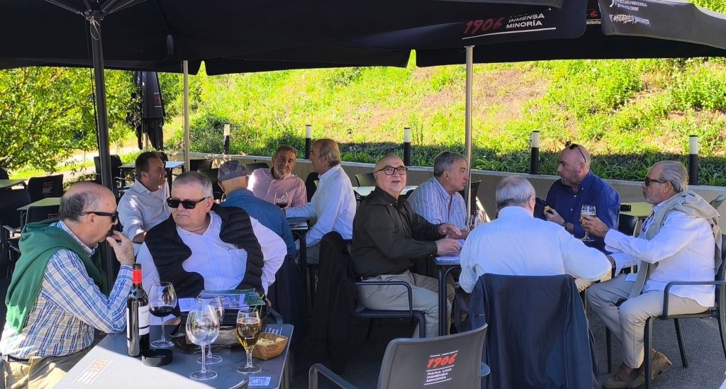 Tertulianos tomando un aperitivo, antes de entrar al comedor. Tertulia 17 de Mieres.